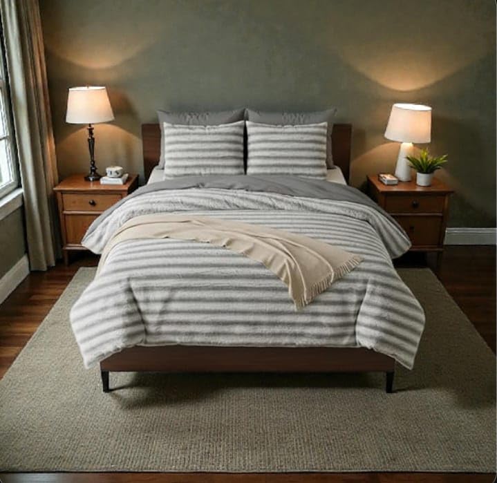 - طقم لحاف فاخر من الفرو: يتضمن لحاف واحد بقياس 2.35 × 2.35 متر مع 2 كيس مخدة بقياس 50 × 70 سم لتوفير مظهر أنيق ومتكامل لغرفة النوم