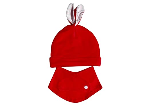 Generic - طقم آيس كاب وسكارف مبطن فرو للأطفال - تصميم أرنوب يناسب حديثي الولادة حتى عمر سنتين