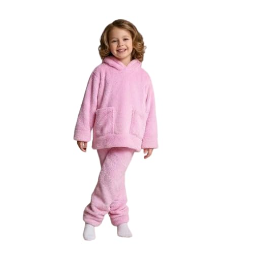 Generic - بيجامة فرو للبنات بغطاء راس منفوش بلون بينك واذنين