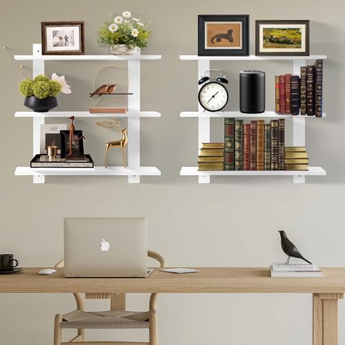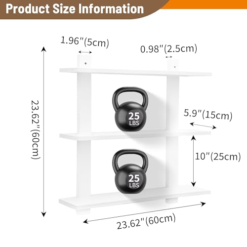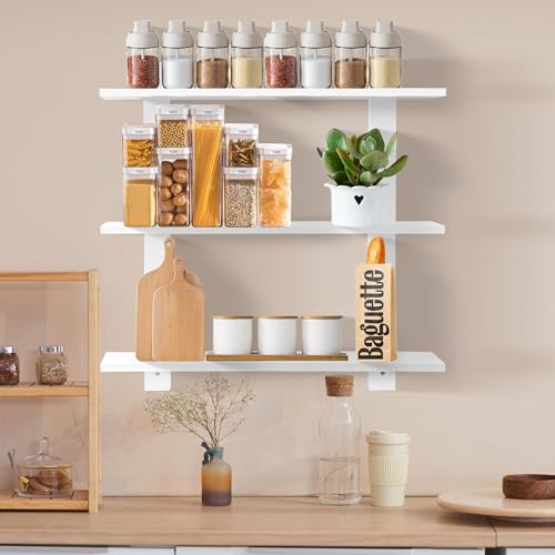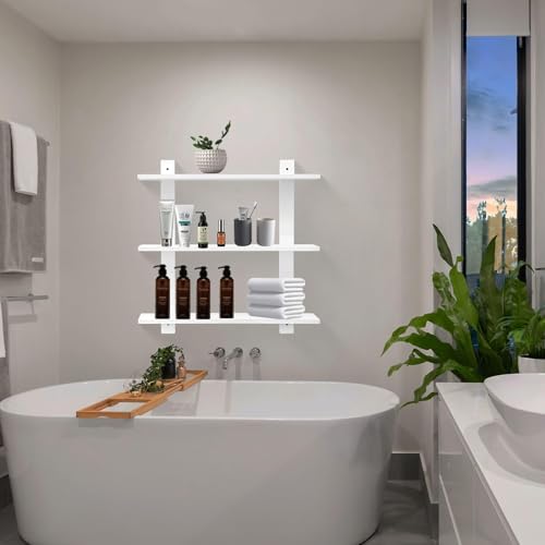 FURAOMEILI - ارفف عائمة من 3 طبقات من فوراوميلي، رف حائط طويل، ارفف فوق المرحاض، رفوف عرض معلقة للحمام وغرفة المعيشة وغرفة النوم والمطبخ والمكتب والمقهى، ديكور ديكور، 60 سم (ابيض)