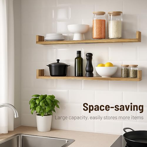 - خشب صلب فاخر وتصميم قوي: رف الكتب المعلق على الحائط مصنوع من الخشب الصلب مع دعامة معدنية مركزية إضافية للدعم، تم تصميم رف الكتب العائم ليدوم طويلاً. يمكن أن يتحمل كل منها ما يصل إلى 9 كجم، مما يوفر قوة موثوقة للكتب والنباتات والقطع الزخرفية مع إضافة لمسة دافئة وطبيعية إلى جدرانك.