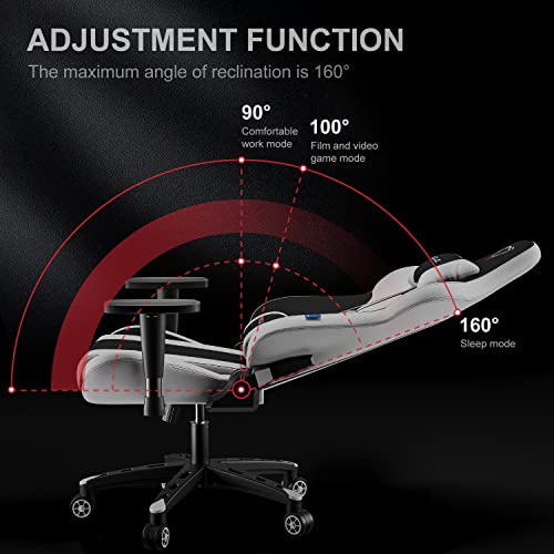 - ترقية الاكسسوارات: مساند ذراع قابلة للتعديل رباعية الأبعاد يمكنك ضبطها بحرية وفقًا لرغباتك. يتيح الكرسي قبضة قوية مع بطانة فوم سميكة من الداخل والخارج. تم تصميم مسند الظهر بشكل مريح لتخفيف التعب وحماية الرقبة والعمود الفقري. يأتي الكرسي مع عجلات بولي يوريثين عالية الجودة منخفضة الضوضاء تدور 360 درجة بدون خدش الأرض.