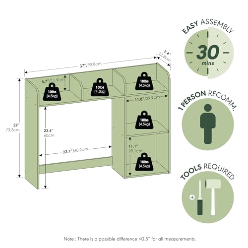Furinno - فرونو رف كتب كلاسيكي لسطح المكتب، منظم مكتب مع 5 ارفف، ابيض