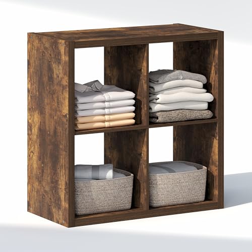 Furinno - فرونو منظم خزانة مكعب، منظم خزانة بـ 4 مكعبات، رف مفتوح، اطار سميك للغاية لخزانة الملابس، غرفة النوم، غرفة المعيشة، خشب الصنوبر الكهرماني