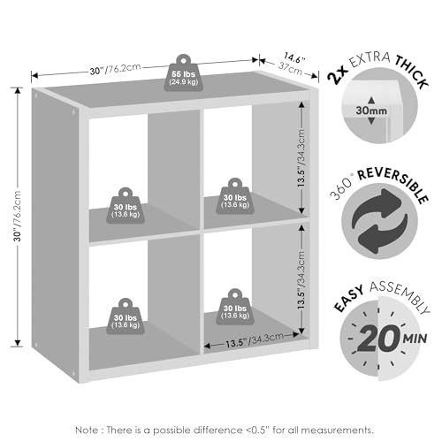 - منظم مكعبات متعددة: يتميز رف التخزين هذا بمكعبات كبيرة جدًا (~ 13.6 ارتفاع × 13.5 عرض) يناسب الملابس المطوية والمناشف وحقائب اليد والألعاب ومعظم الصناديق القماشية الـ 13؛ يعمل كرفوف للخزانة أو التخزين في نهاية الخزانة أو منظم أحذية صغير في الخزانة