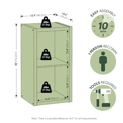 Furinno - فرونو منظم تخزين مكعب مزخرف مفتوح الظهر من كيوبيكل، 2، رمادي فاتح