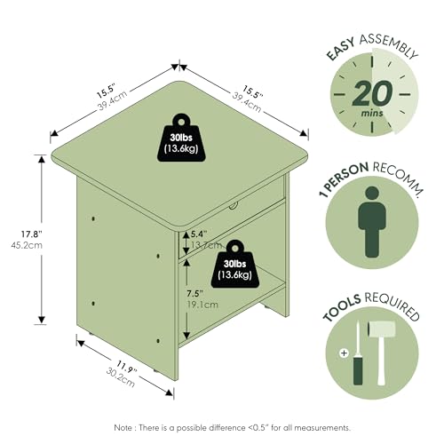 Furinno - طاولة داريو جانبية عصرية بجانب السرير مع درج سلة مهملات فرونو، عبوة من قطعة واحدة، لون كهرماني صنوبر/أسود