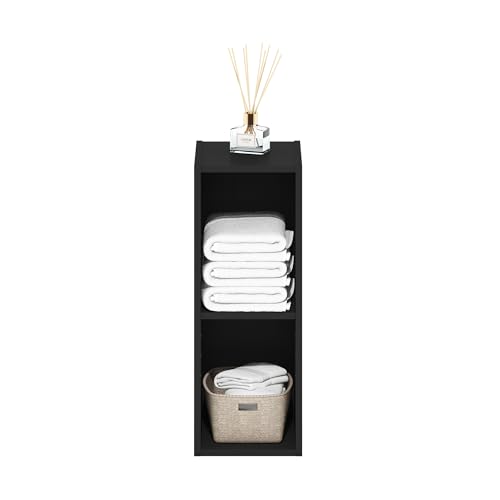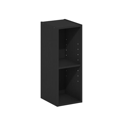 Furinno - فرونو خزانة كتب من طبقتين موفرة للمساحة من فولدا، عرض 8 انش، لون اسود وود، خشب مُصنع، مغلف