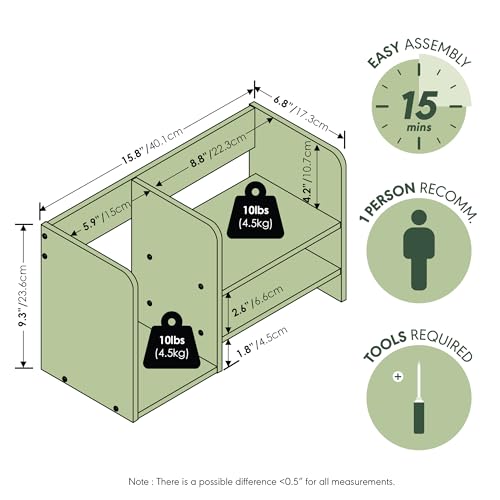 Furinno - فرونو منظم تخزين خشبي لسطح المكتب ولوازم المكتب المنزلية من هيرميت، ابيض