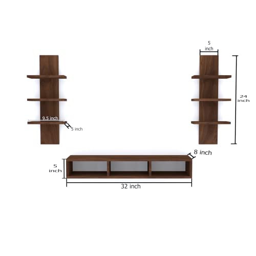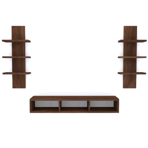 Furinno - طقم رفوف عرض من خشب ليفي متوسط الكثافة لوحدة ترفيه التلفزيون يثبت على الحائط مناسب لغرفة المعيشة ومتعدد الأغراض لغرفة النوم والقاعة والمنزل والمكتب والفندق والأثاث من فورينو (لمسة نهائية بلون بني)
