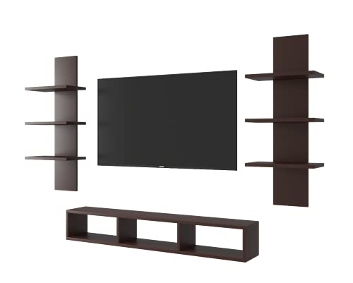 Furinno - مجموعة رفوف عرض لوحدة الترفيه التلفزيونية المثبتة على الحائط من فرونو، خشب متوسط الصلابة، مناسبة للاستخدام المنزلي والمكتبي - بني، فارينو، حامل صندوق علوي