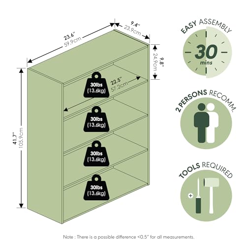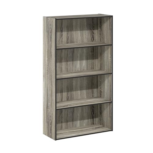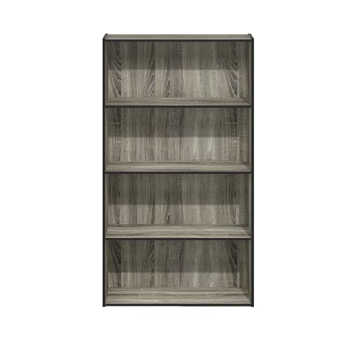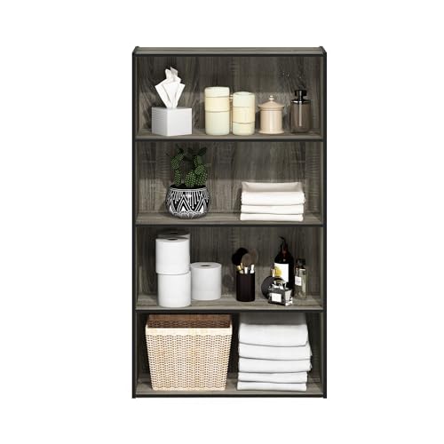 Furinno - رف مفتوح باسير من 4 طبقات من فرونو- لون رمادي من البلوط الفرنسي