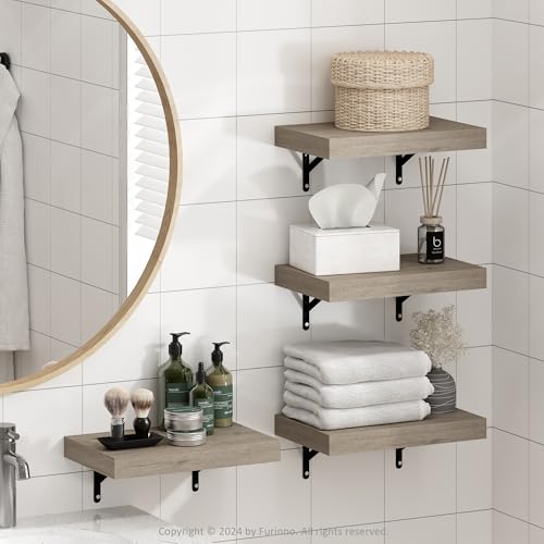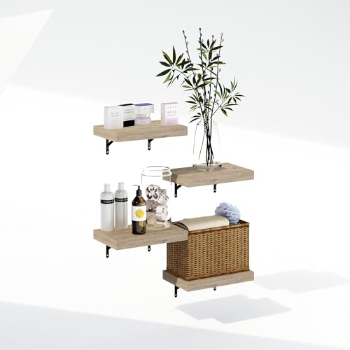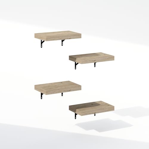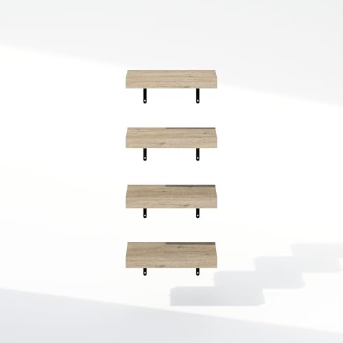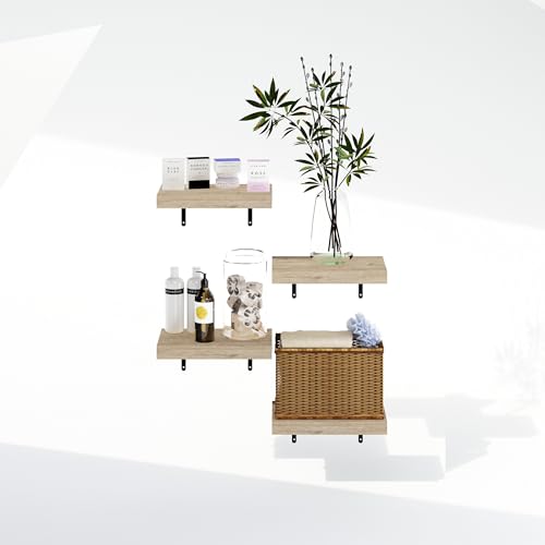 Furinno - فرونو رفوف عرض عائمة للحمام تثبت على الحائط مقاس 15 انش من تانا، لون طبيعي، مجموعة من 4 قطع