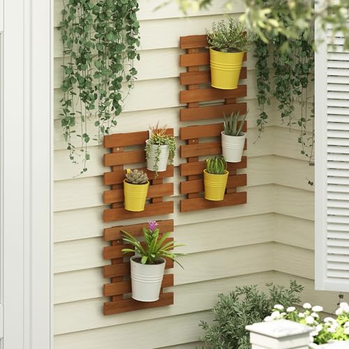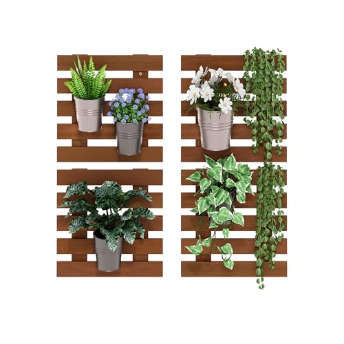 Furinno - وعاء نباتات معلق على الحائط من الخشب الصلب للاستخدام الخارجي من فورينو، وعاء تيومان بلمسة نهائية بزيت الساج، مجموعة من 4 قطع، طبيعي
