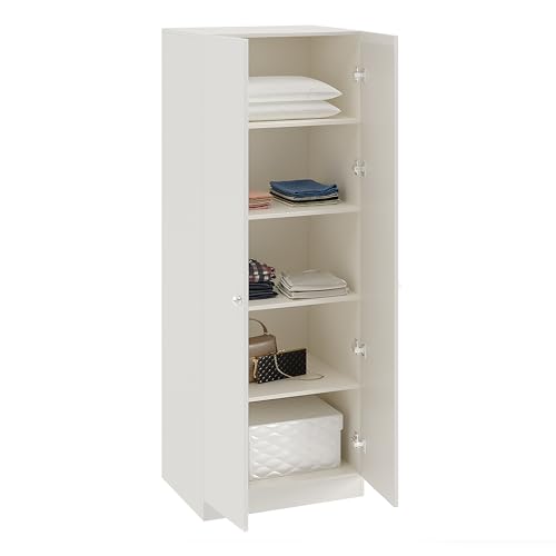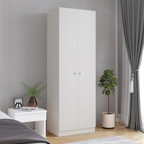 FURNEASER - دولاب ملابس ببابين من الخشب بتصميم هندسي رائع منظم خزانة بباب مزدوج متعدد الأغراض لغرفة النوم وغرفة المعيشة فرنيزر مقاس 60 سم× 42 1.80 متر لون أبيض