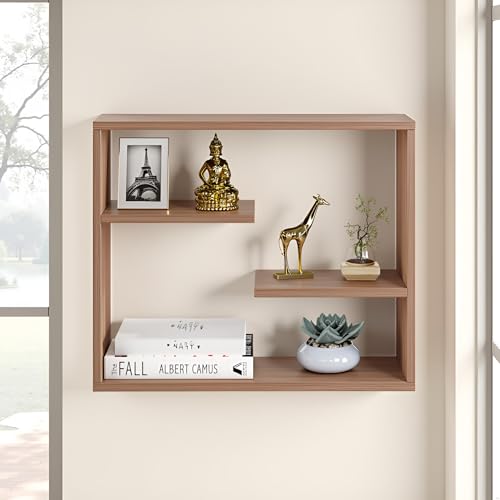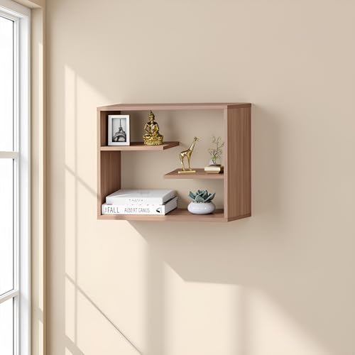 FURNEASER - رف حائط حديث عائم بحامل يثبت على الحائط من الخشب الهندسي لغرفة المعيشة أو النوم بتصميم مزخرف متعدد الاستخدامات للتخزين والديكور من فيرنيزر، 61 × 20 × 46 سم، ايكزوتيك تيك