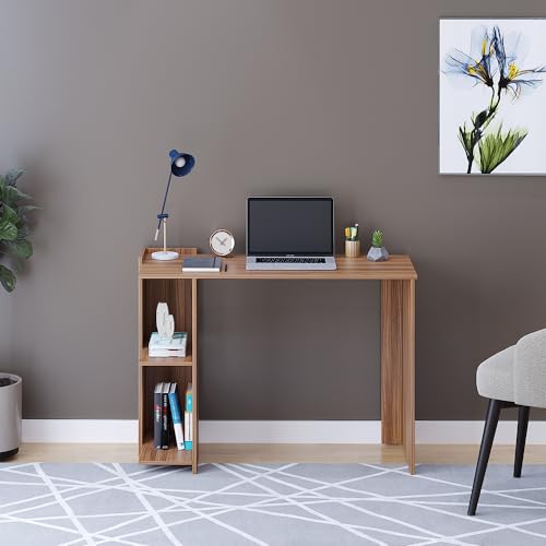 FURNEASER - طاولة دراسة لوميا من الخشب الهندسي فيرنيزر محطة عمل الكمبيوتر اللابتوب مكتب دبليو اف اتش العاب مع مساحة تخزين كبير خشب الساج الغريب .