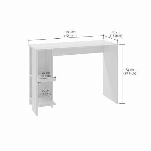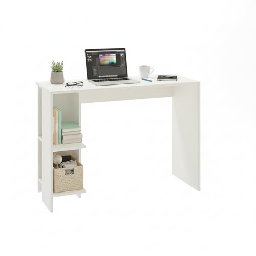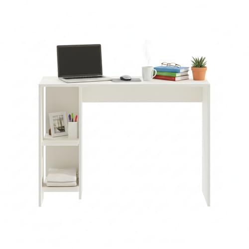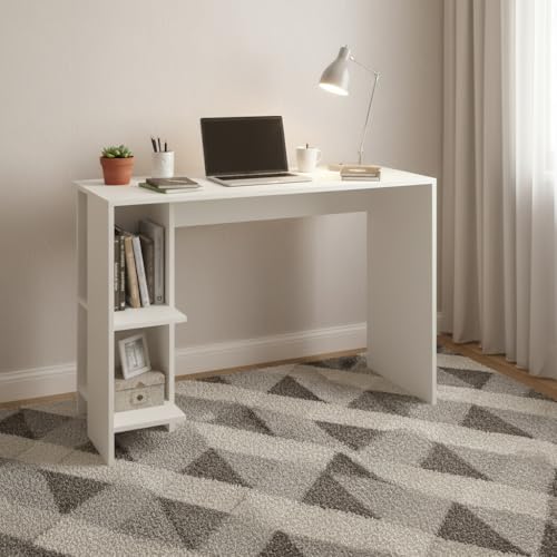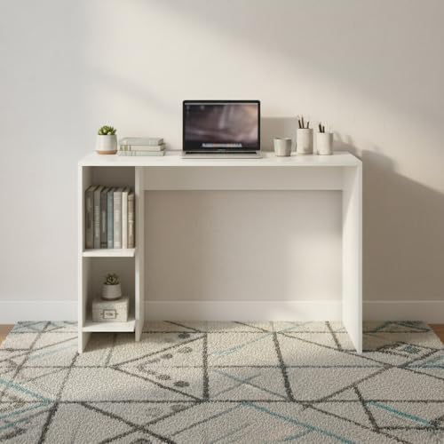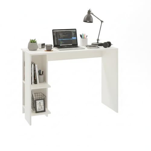 FURNEASER - طاولة دراسة خشبية هندسية لوميا من فيرنيزر محطة عمل الكمبيوتر اللابتوب مكتب دبليو اف اتش العاب مع مساحة تخزين ابيض .