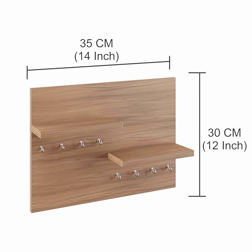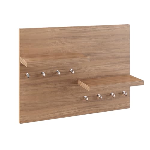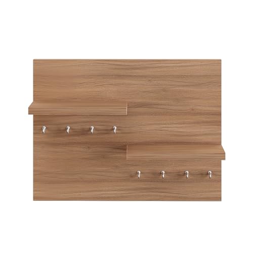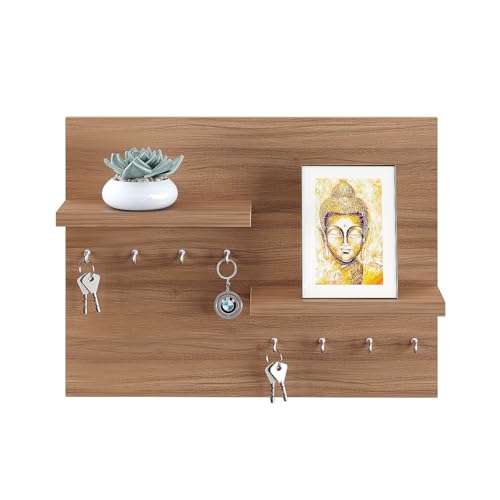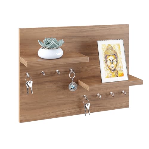 FURNEASER - حامل مفاتيح يثبت على الحائط للمنزل من فيرنيزر مع رف عرض مزخرف (8 خطافات) سلسلة مفاتيح حلقة حامل موبايل منظم (خشب الساج الغريب)، الحد الأقصى للوزن الموصى به: 4.0 كيلوجرام