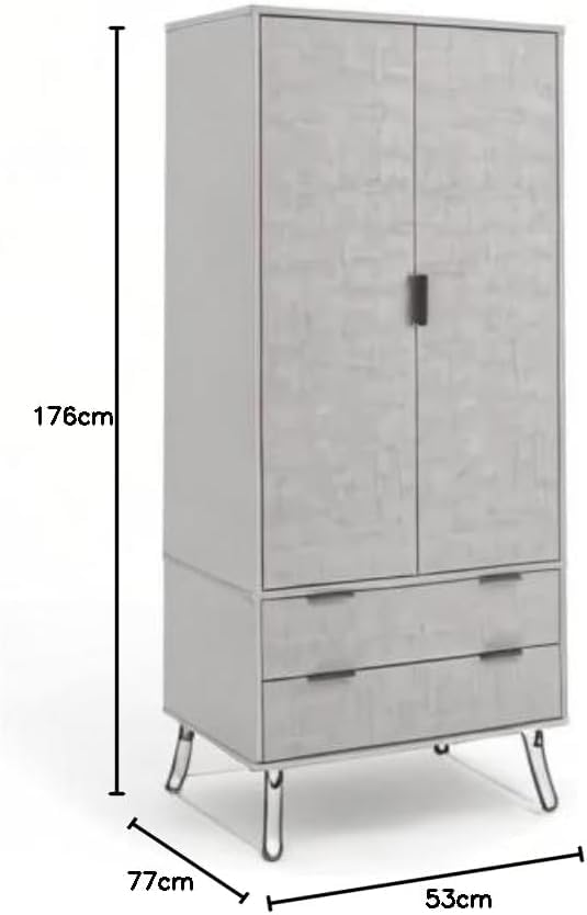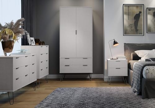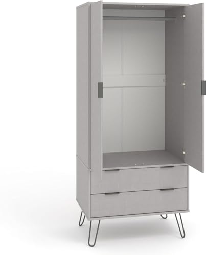 FurniFlex - دولاب ملابس مزدوج ببابين لغرفة النوم مع درجين من فورني فليكس، لون رمادي