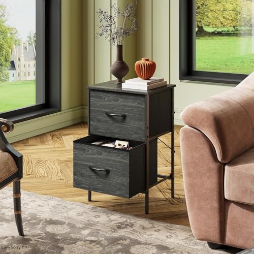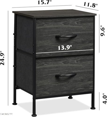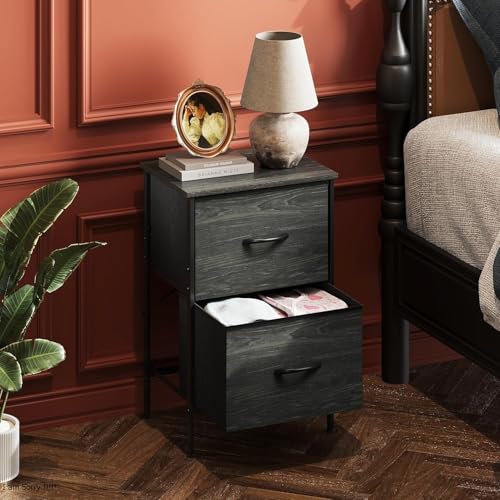 FurniFlex - خزانة جانبية بدرجين لغرفة النوم من فيرني فليكس، مجموعة من قطعتين، مقاس L، لون أسود فحمي
