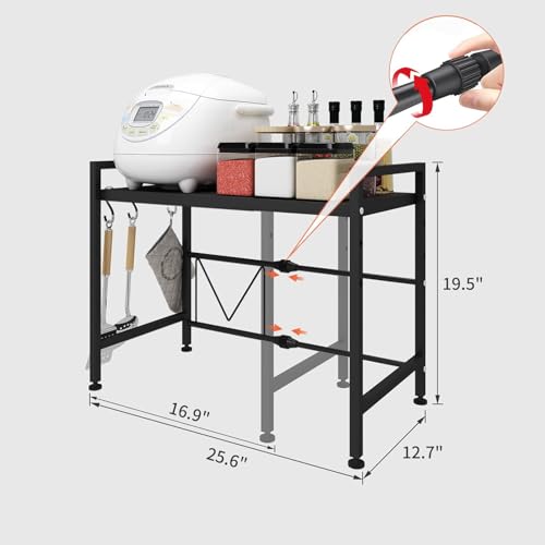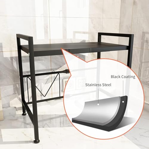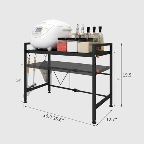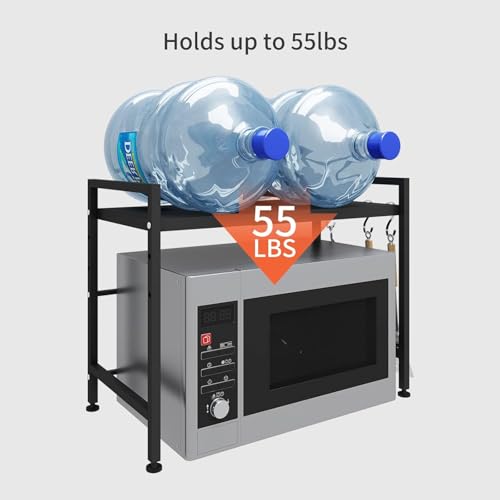 FurniFlex - رف فرن ميكروويف بطبقتين مع 3 خطافات من فيرني فليكس، أسود غير لامع