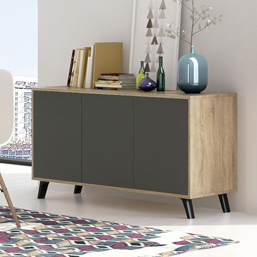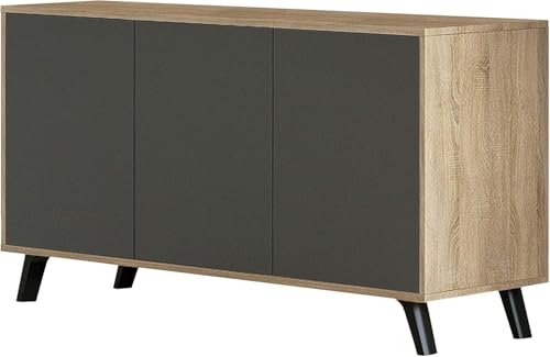 FurniFlex - خزانة بوفيه جانبية بـ3 أبواب، 1.38 متر (طول) × 39.5 سم (قاعدة) × 70 سم (ارتفاع)، من فيرني فلكس بلوط/جرافيت