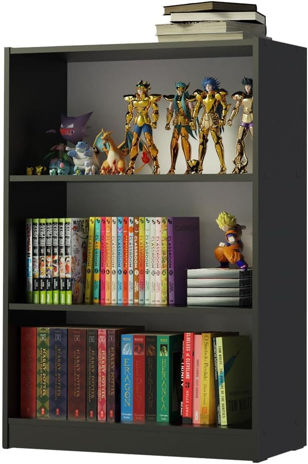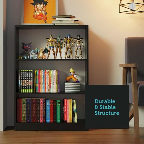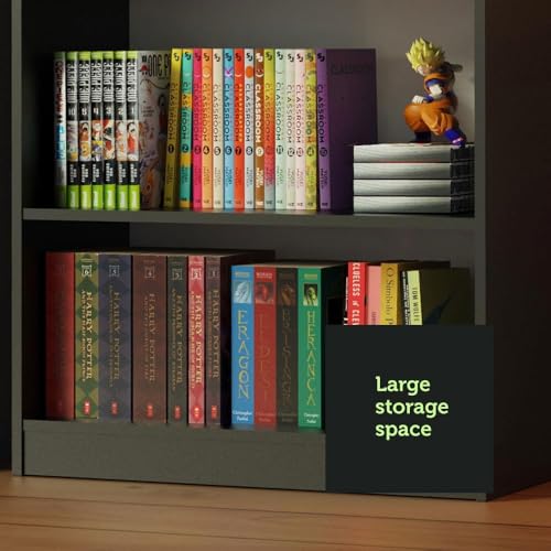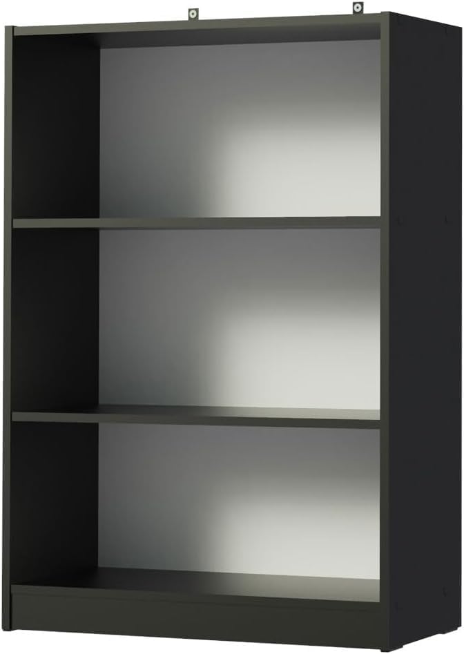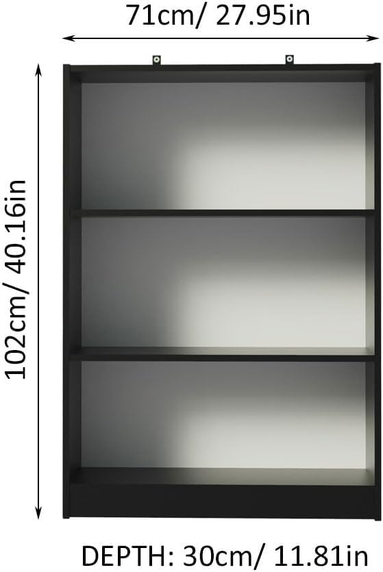 FurniFlex - خزانة كتب خشبية بـ 3 أرفف مع مساحة تخزين من فورني فليكس، مقاس 71 سم × 102 سم × 30 سم، أسود