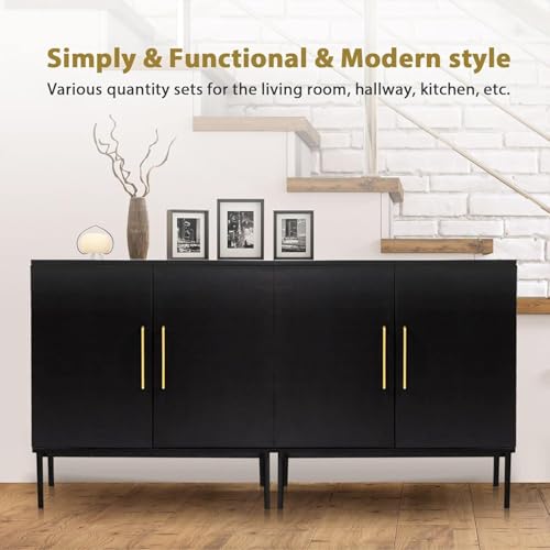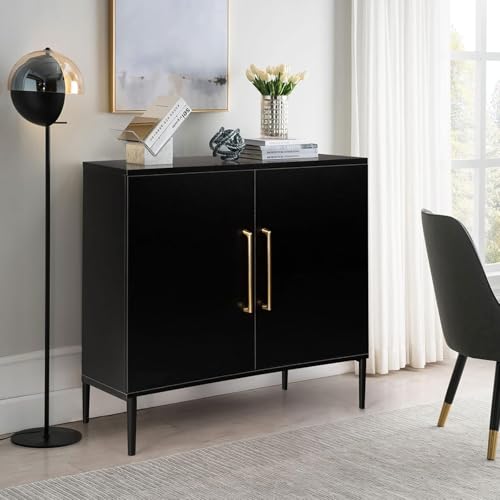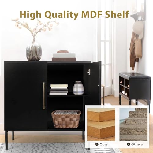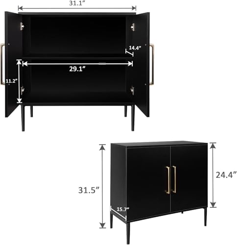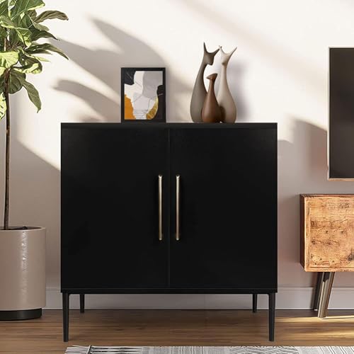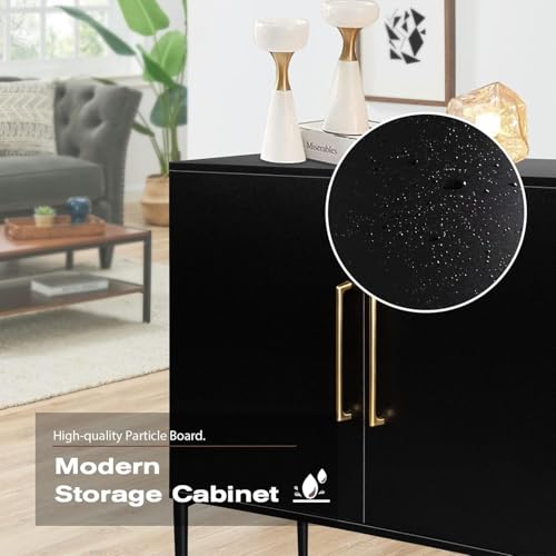 FurniFlex - دولاب بوفيه خشبي انسيابي مصمم مع باب من فورني فليكس، لون أسود