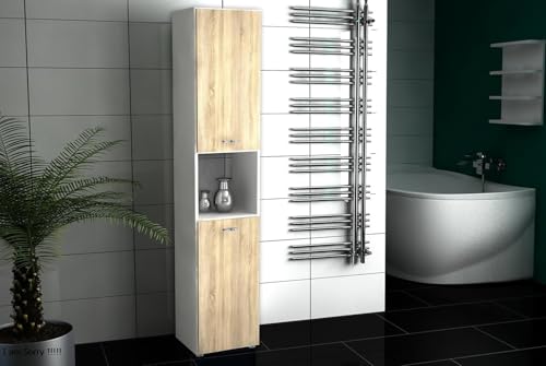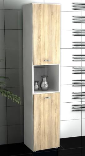 FurniFlex - دولاب تخزين للحمام من فورني فليكس، 12.7 سم أبيض وبلوطي (سونومو اوك)