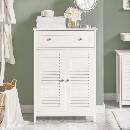 FurniFlex - خزانة جانبية للتخزين على ارضية الحمام مع درج وأبواب من فورني فليكس