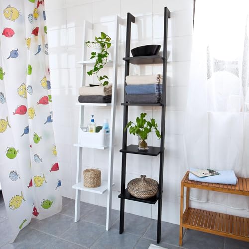FurniFlex - رف حائط على شكل سلم للحمام مكون من 4 أرفف من فورني فليكس، عرض 33 سم