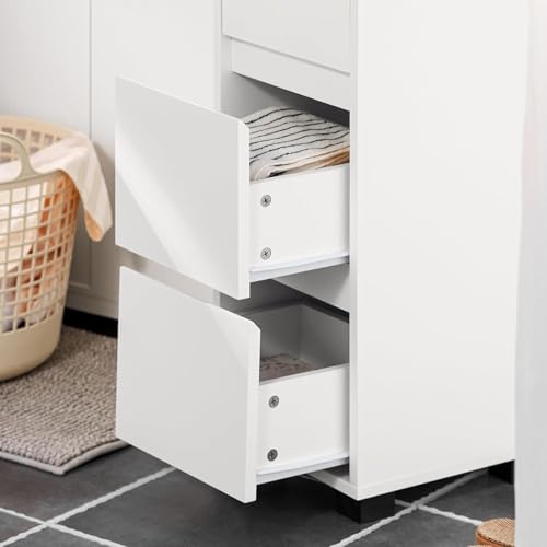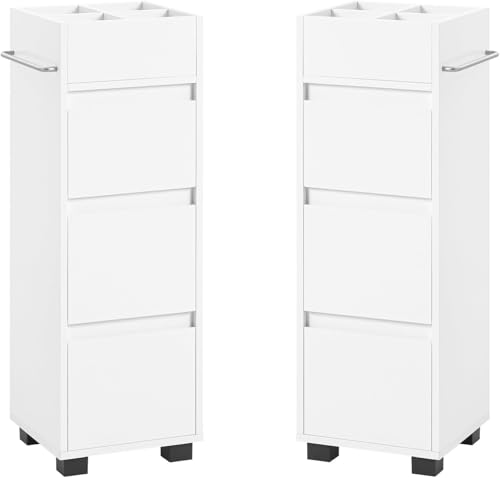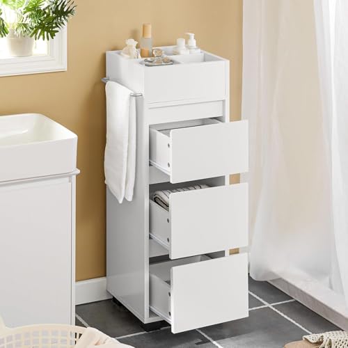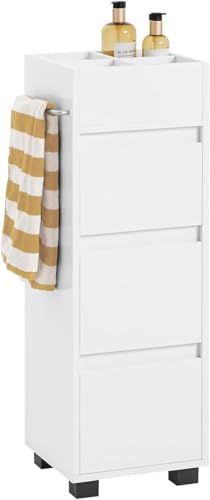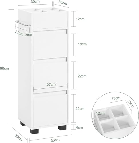 FurniFlex - وحدة أدراج للحمام بثلاثة أدراج و4 مساحات تخزين من فيرني فلكس، عمق 30 سم × عرض 30 سم × ارتفاع 90 سم، لون أبيض، طراز BZR29-W