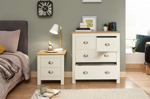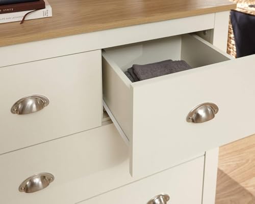 FurniFlex - خزانة تخزين بأدراج لغرفة النوم بمقبض صلب من فورني فليكس، لون كريمي/ بلوط
