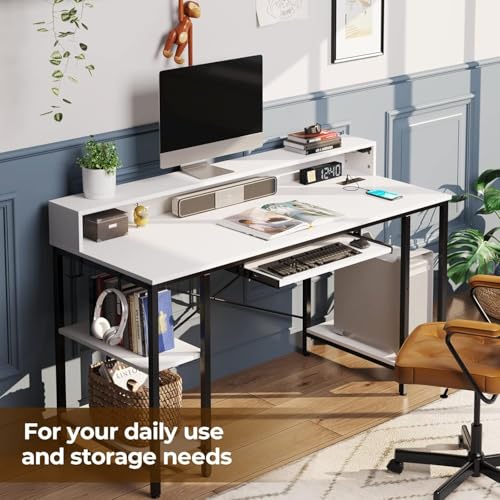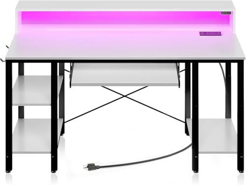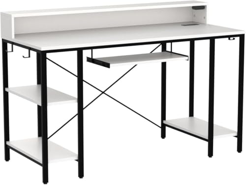 FurniFlex - مكتب كمبيوتر بإضاءة ليد ومنافذ طاقة من فيرني فليكس، مقاس 1.19 متر، أبيض