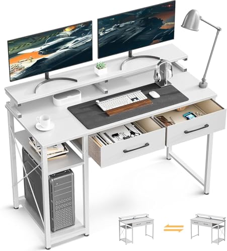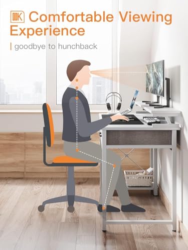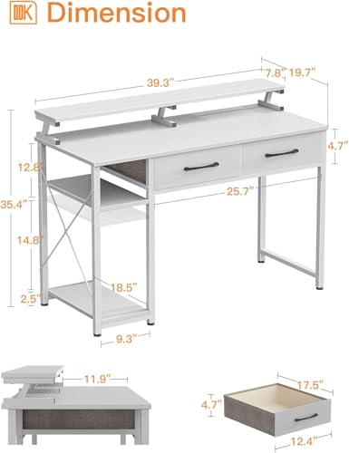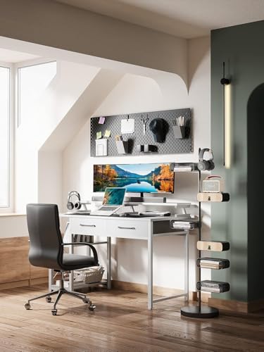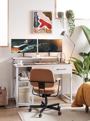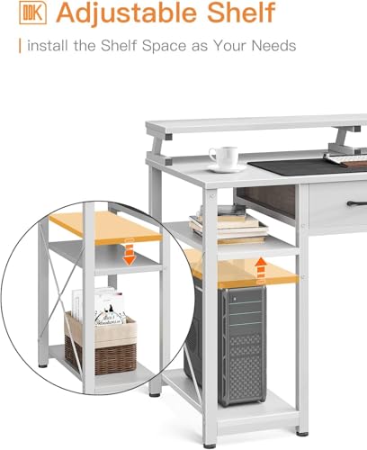 FurniFlex - مكتب كمبيوتر بأدراج ورفوف تخزين خشبية من فورني فليكس، مقاس 1.01 م، لون أبيض