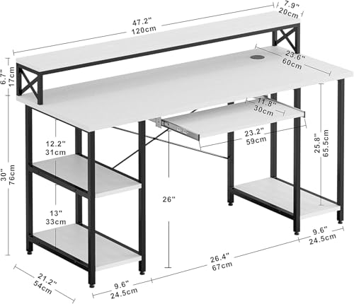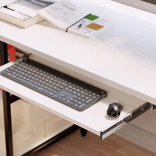 FurniFlex - مكتب كمبيوتر مع رف لوحة مفاتيح من فورنيفليكس، مقاس 1.2 م، أبيض