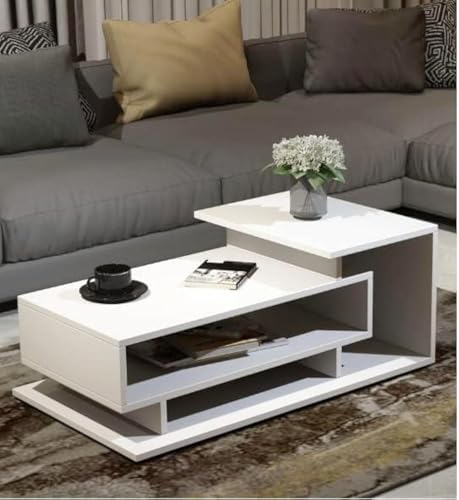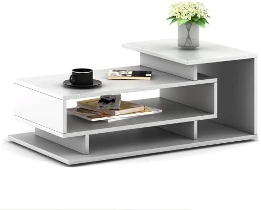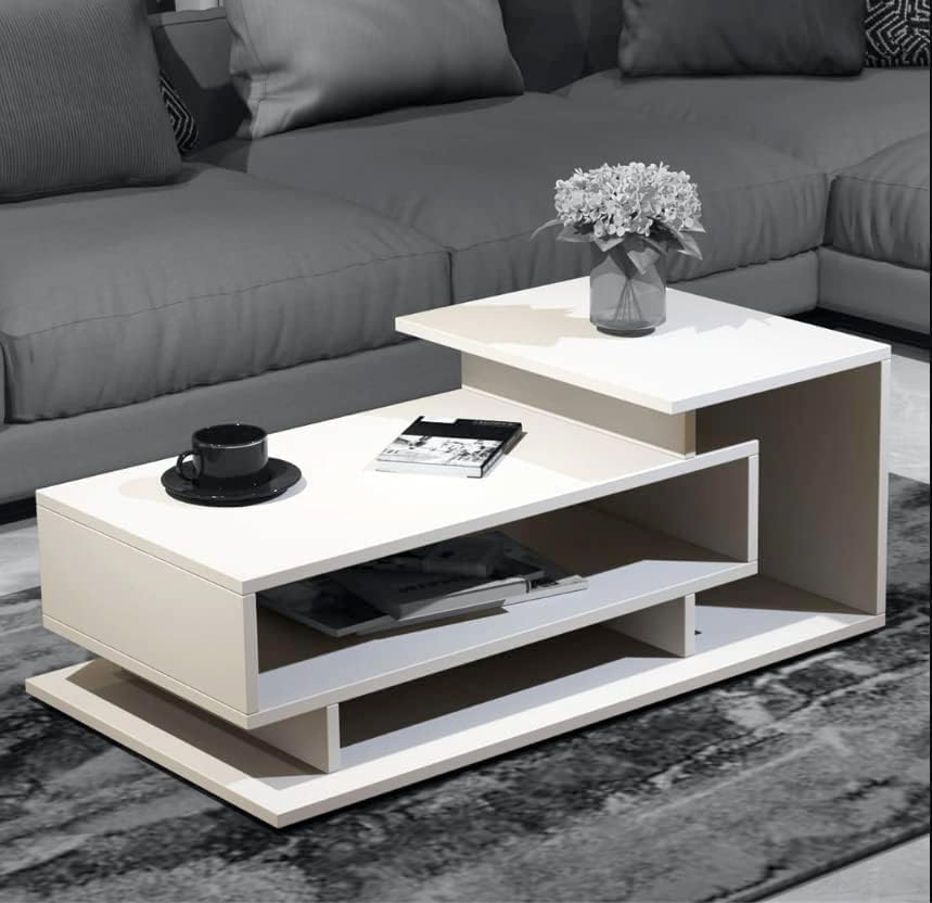 FurniFlex - طاولة قهوة خشبية هندسية فابيليو من فورني فليكس، أبيض