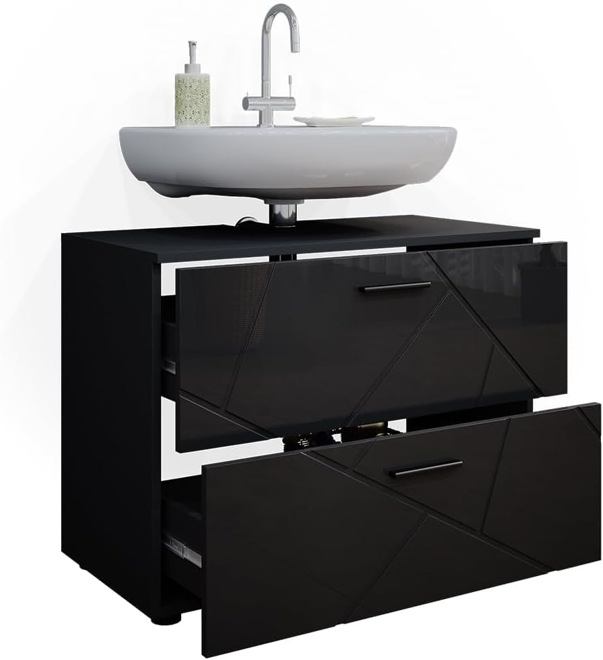 FurniFlex - وحدة تخزين ايرما فانيتي شديدة اللمعان FF762 للحمام من فيرني فلكس، مقاس 80 سم