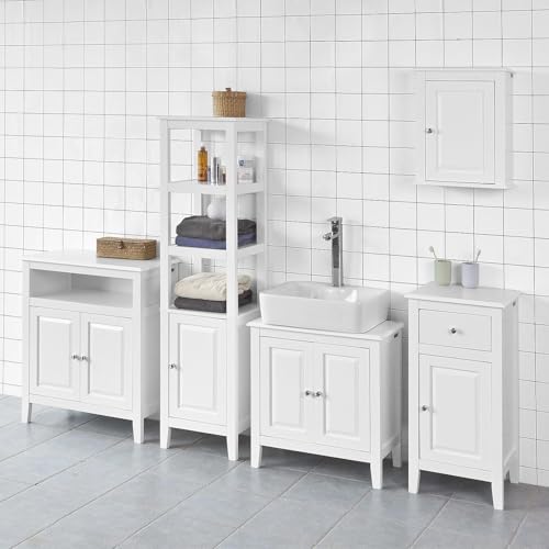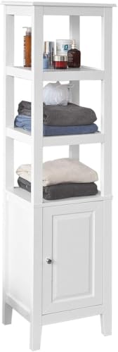 FurniFlex - دولاب تخزين طويل للحمام قائم على الأرض من فورني فليكس مع 3 أرفف ودولاب واحد، أبيض