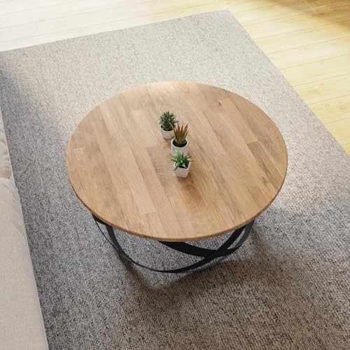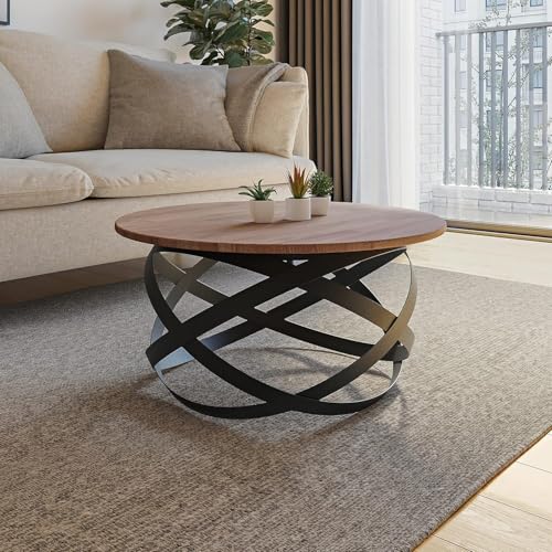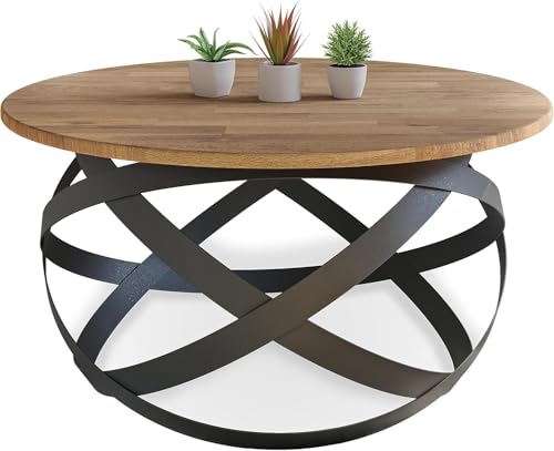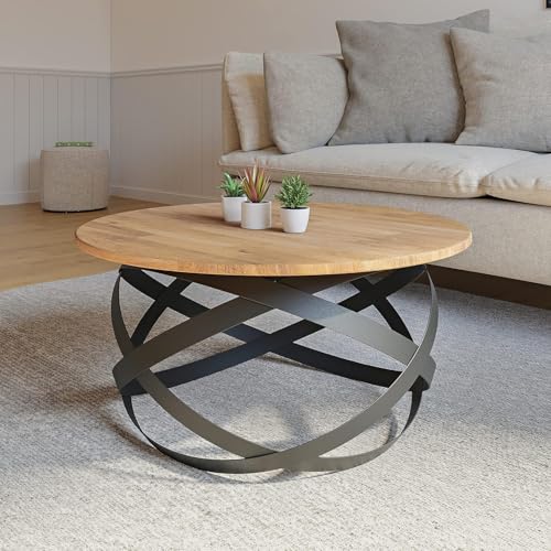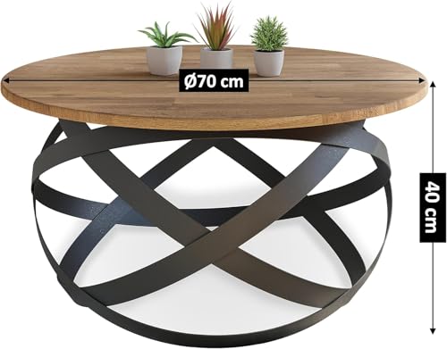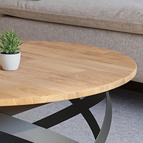 FurniFlex - طاولة قهوة دائرية فلورنس من فورني فليكس، قطر 70 سم × ارتفاع 40 سم، طبيعي/أسود