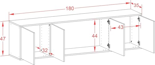 FurniFlex - وحدة منخفضة معلقة اناهايم من فيرني فليكس، مقاس 180 × 49 × 35 سم، أبيض غير لامع