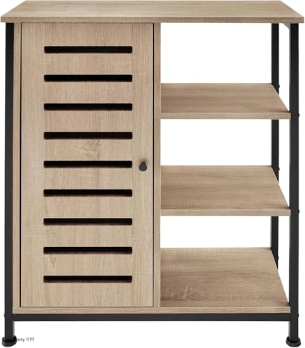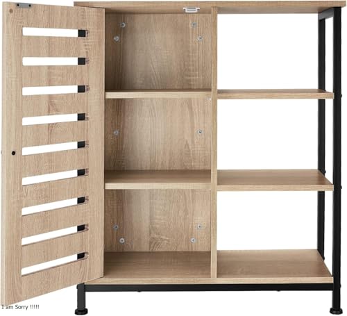 FurniFlex - دولاب جانبي بنمط صناعي المميز مزود بمساحة تخزين يضفي لمسة عصرية وجذابة على مساحتك من فيرني فليكس، مقاس 71 سم × 32 سم × 82 سم، لون خشب فاتح