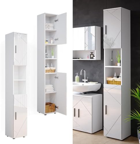 FurniFlex - خزانة حمام ايرما طويلة مكونة من 6 أقسام من فورني فليكس، لون أبيض