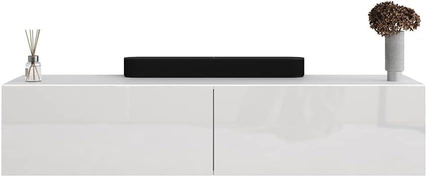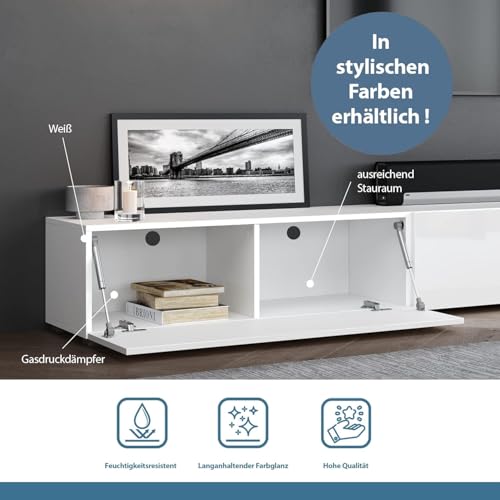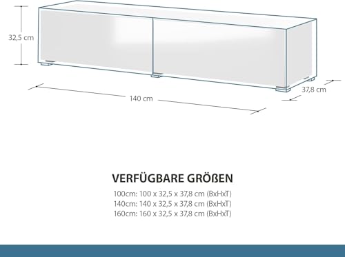 FurniFlex - خزانة تلفزيون ايرما من فورني فليكس مع 2 غطاء كمساحة تخزين، مقاس 140 سم، ابيض
