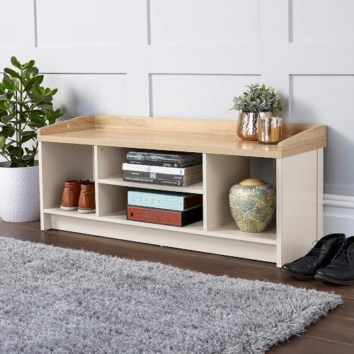 FurniFlex - مقعد تخزين أحذية مفتوح بلونين من خشب البلوط الكريمي من فيرني فلكس، موديل KY048C