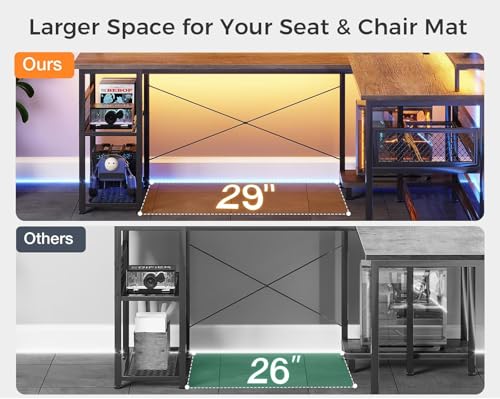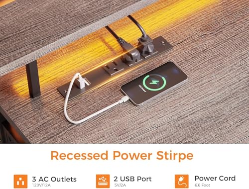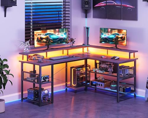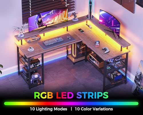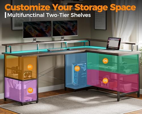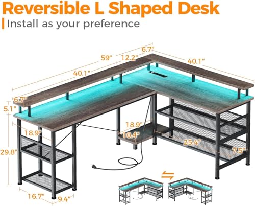 FurniFlex - مكتب كمبيوتر على شكل L مع إضاءات ليد من فيرني فلكس، 1.5 متر، رمادي (جراي اوك)