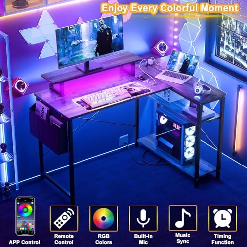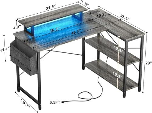 FurniFlex - مكتب كمبيوتر على شكل حرف L مع شريط ليد وشريط طاقة، مقاس 1.2 م، أسود/ خشب البلوط من فورني فليكس