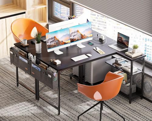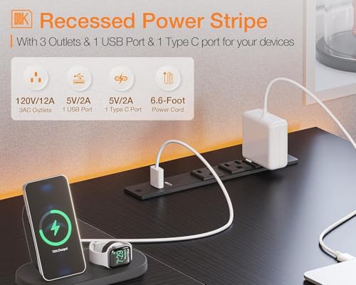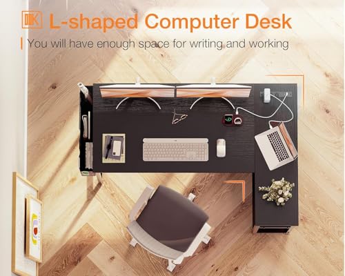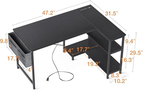 FurniFlex - مكتب كمبيوتر للألعاب من فورني فليكس على شكل حرف L مع منافذ طاقة، مقاس 1.2 م، أسود