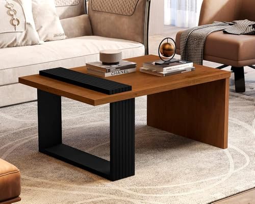 FurniFlex - طاولة قهوة لغرفة المعيشة من فيرني فليكس، لون كراميل/أسود